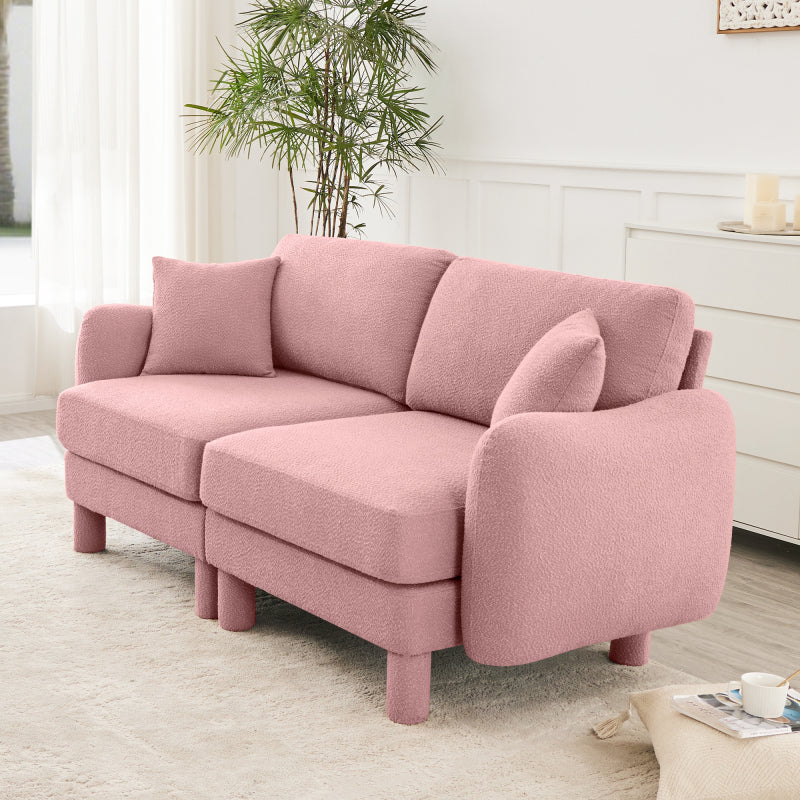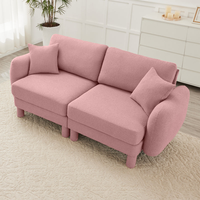 Boucle Fabric 2-seater Loveseat Sofa Couch With Distinctive Shell-shaped Armrests,Cylindrical Legs Wrapped with Self-fabric,Pink Color