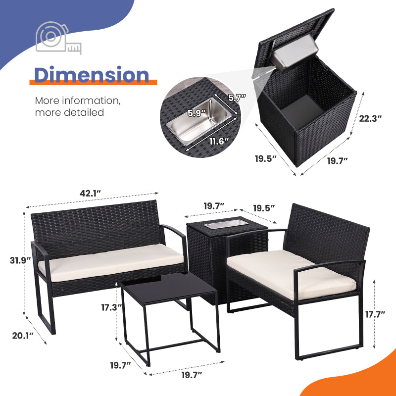 - ] STURDY & DURABLE MATERIAL: Our patio furniture set is made of premium PE rattan wicker and rust-resistant steel frame which are strong enough to withstand all weather variations; The seat and back cushion covers made of high-density fabric which is durable and anti-splashing [